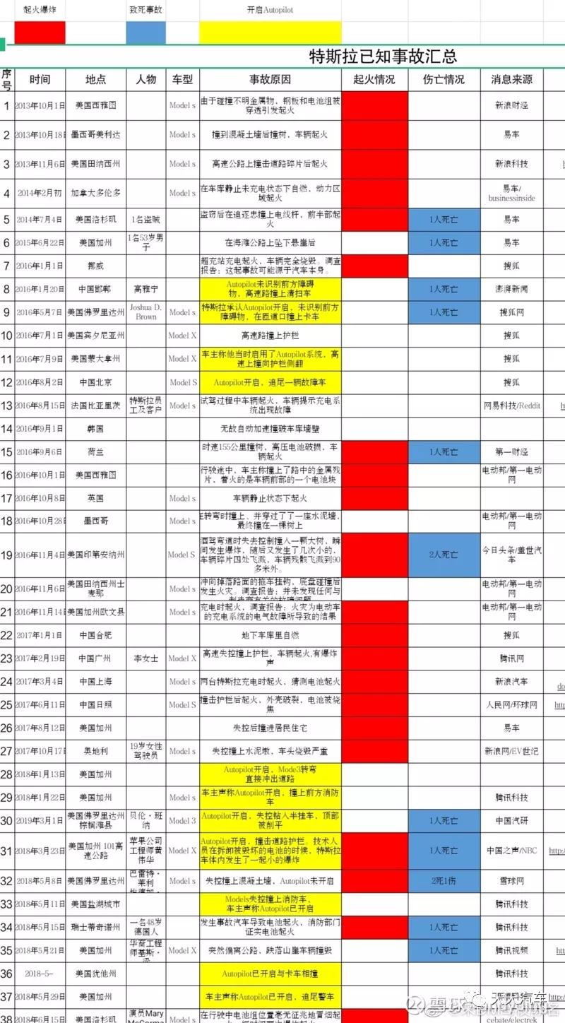 (注:以上表格来源于热心网友不完全统计,标红为起火事件,数据截止至2018年6月15日,https://bbs.hupu.com/36820545.html)