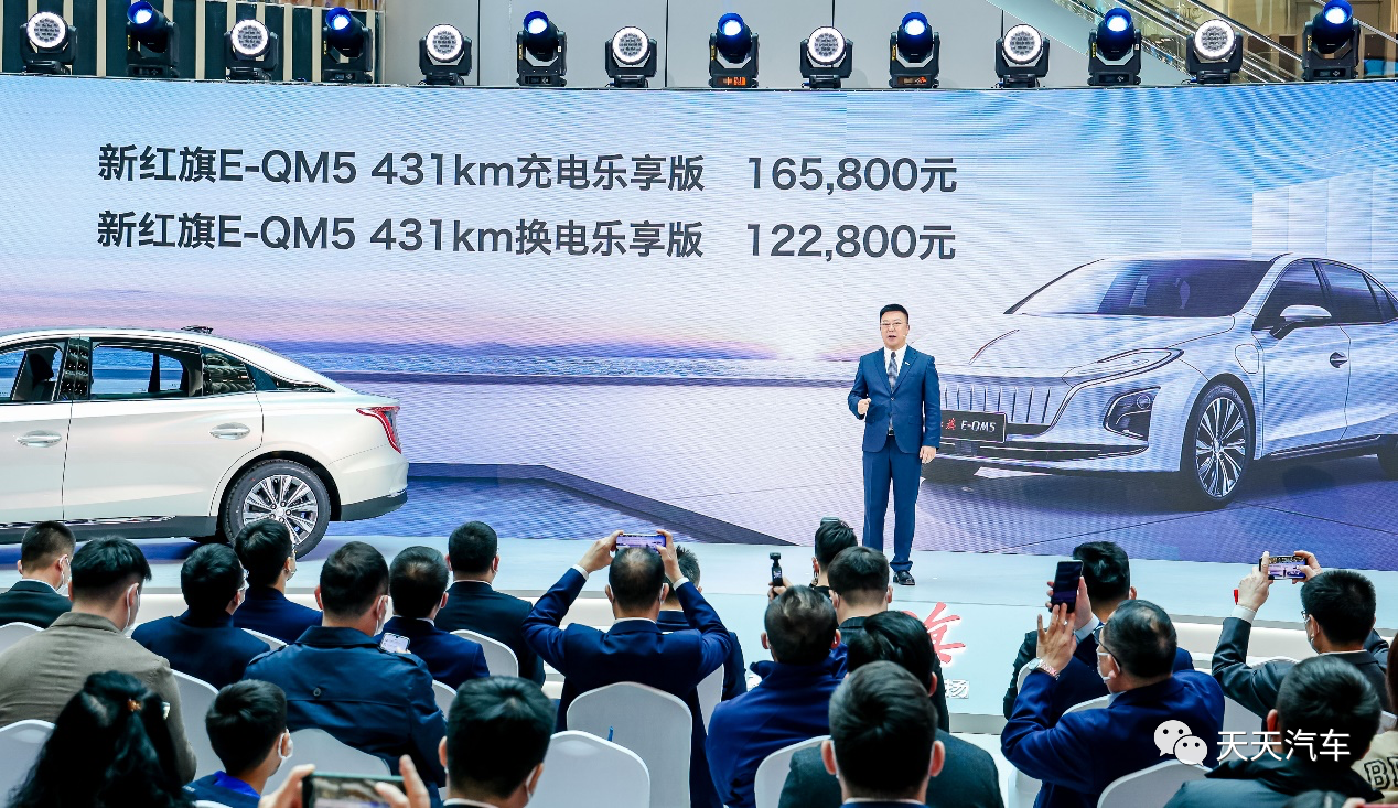 3月12日,“你的绿色理想型:红旗E-QM5新车上市及用户权益发布仪式”在北京丰台万达广场举办,上市仪式以线下活动结合线上直播的“百城联动”方式,携手全体红旗经销商网络和万达商超体系同步进行。体操世界冠军邹敬园、刘洋来到现场,与在座嘉宾热情互动。中国冰雪世界冠军曲春雨和徐梦桃也通过视频的形式,表达对新红旗品牌的祝福。仪式中,一汽红旗汽车销售有限公司总经理陈旭宣布新红旗E-QM5 431km充电乐享版轿车的官方指导价为16.58万元,新红旗E-QM5 431km换电乐享版轿车的官方指导价为12.28万元。伴随新车上市,新红旗发布了一系列E-QM5客户购车、用车、换车方面的全新用户权益,以及“绿色旗迹”计划带来的全新惊喜。此次新红旗E-QM5新车上市及用户权益发布,不但是新红旗面向新能源汽车私人客户市场的一次重磅新举,同时也是“一切为了客户、一切服务于客户、一切谦敬于客户”品牌理念和品牌生态建设深度结合的一次创新落地,再次展现出新红旗“客户、产品、生态”共建共荣的“理想型”布局。 2022年1至2月,新红旗销量突破63800台、同比增长超过40%,自2018年到2021年创造四年销量增长63倍的产业奇迹以来,继续保持着远超行业平均增速的前进步伐;截至目前,新红旗车主累计已接近70万人。销量屡创新高之外,新红旗在产品更新换代、品牌跨界营销、生态体系打造、客户运营服务等方面,均以一往无前的创新姿态,向着“美好生活、美妙出行”的理想前进。2021年至今,新红旗品牌通过向中国荣耀健儿敬赠红旗H9高级轿车,与国家体育总局冰雪运动中心、射运中心、“TEAM CHINA中国国家队”以及一系列体育项目国家队达成战略合作,展现了倾力支持体育强国事业的宏伟格局和有力担当。在助力体育强国事业的同时,新红旗始终坚持“一切以客户为中心”、贯彻“智慧六位一体”体验式营销模式,联合万达集团等跨行业伙伴共建生态,持续为客户奉献惊喜体验。2021年7月,新红旗“旗仕生态”正式启动;同年10月,一汽红旗与万达集团宣布共建全新“红旗用户体验生态”,第一批权益已于2022年1月落地实行,共计超过28万人次的红旗车主,通过红旗智联APP享受到了免费电影票、免费停车券、万达酒店贵宾卡、亲子活动等权益。随着客户需求变化和新红旗产品技术的积累,新红旗对旗下H9、E-HS9、HS7、HS5、H5等多款产品进行了焕新、升级和加配。2021年上海车展,新红旗E-QM5正式于出行市场上市,凭借越级的舒适驾乘体验和为出行各方带来更多价值的卓越表现,成为新红旗深入践行和落实Ecolin5“五链融合”发展模式和碳达峰、碳中和目标战略的核心载体。2021年12月的海南博鳌论坛上,新红旗宣布将上市E-QM5私人客户版,让更多客户享受绿色低碳出行的美好生活体验。本次E-QM5 431km乐享版系列产品上市,践行了此前承诺,更是对广大新能源个人客户需求的最佳回应。作为首款面向个人客户的纯电B级轿车产品,红旗E-QM5拥有“四大维度、八大魅点”,堪称是“四维八方”的极致魅力。在外观方面,新红旗E-QM5承继新红旗“尚致意”设计语言,并进行了电动化、科技化的加持和改进。在安全方面,E-QM5拥有“国车标准、三重保障”的安全设计,包括“9H”高强笼式车身、“FCW前方碰撞预警”、“AEB自动紧急刹车系统”以及新红旗独创的蜂窝式全铝超强电池结构,全方位保障客户驾乘安全。在驾乘方面,E-QM5以超细纤维内饰、高级声学玻璃和5层隔音结构的设计,为驾乘人员提供静谧舒适的驾乘环境;超过5米车身长度、1.1米的前后座椅中心距离,真正为乘坐者创造了比肩D级豪车的“尊享C位”后排空间。在动力方面,E-QM5搭载高容量电池,NEDC续航里程可达431公里;快速充电功能可实现充电10分钟、行驶百公里,换电版车型换电操作时间少于1.5分钟。新红旗E-QM5还拥有红旗智联APP的全时智慧陪伴,客户可实现远程空调控制,无论严寒酷暑,都让每一次出行在最舒适的温度中开启。此外,客户还可以通过红旗智联APP,一键直达车辆充电状态、续航里程、车辆健康监测、道路救援和违章查询等服务。尤其值得一提的是,充电版车型已经在全国22个城市试运行,累计行驶超过7000万公里;换电版车型在长春市已累计试运行超过3000万公里,顺利通过了东北地区超过零下30度极寒天气的考验,出行客户反馈良好,宣告着E-QM5已做好了为全国客户送上美妙绿色出行体验的准备。礼遇新荣耀,红旗献真心。新红旗针对E-QM5私人客户充电版特别规划的“购车易”、“用车省”和“残值无忧”三大客户权益,更是在产品的卓越魅点之外,奉献给广大个人专车运营和家庭用车客户的“理想型”惊喜体验。新红旗E-QM5的“购车易”权益,客户可通过新红旗品牌独有的金融政策,购买新红旗E-QM5可享两年0利息、电池租赁、保值回购、融资租赁等丰富的金融方案,最大限度满足资金需求。通过新红旗“用车省”的权益和品牌服务,E-QM5客户可享“便携式充电器、一年免费公共充电服务、现金补贴”三项权益任选其一;针对E-QM5客户,新红旗行业独有的“三终身一免保”服务政策升级为“四终身”,即:“终身免费保修、终身免费救援、终身免费取送、终身免费保养”,真正让客户买车省、用车更省。E-QM5客户“残值无忧”权益,包括购车时可享受置换补贴5000元以及二手车回购兜底保值服务,让客户放心购车、放心用车