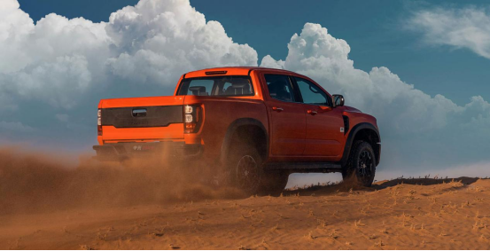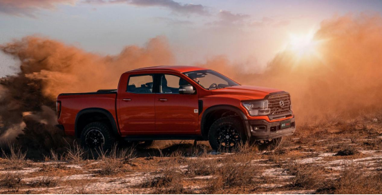 外观方面,整体延续了车型一贯威猛高大的视觉效果,前脸多边形格栅搭配上两侧宽大的大灯组,让那个前脸看上去非常有气势。新车底部包围向外凸起的造型设计,同样是增添了前脸的霸气姿态。车身尺寸方面,新车长宽高分别为5761(5792)/2045/1910mm,货箱尺寸为1810/1700/515mm。