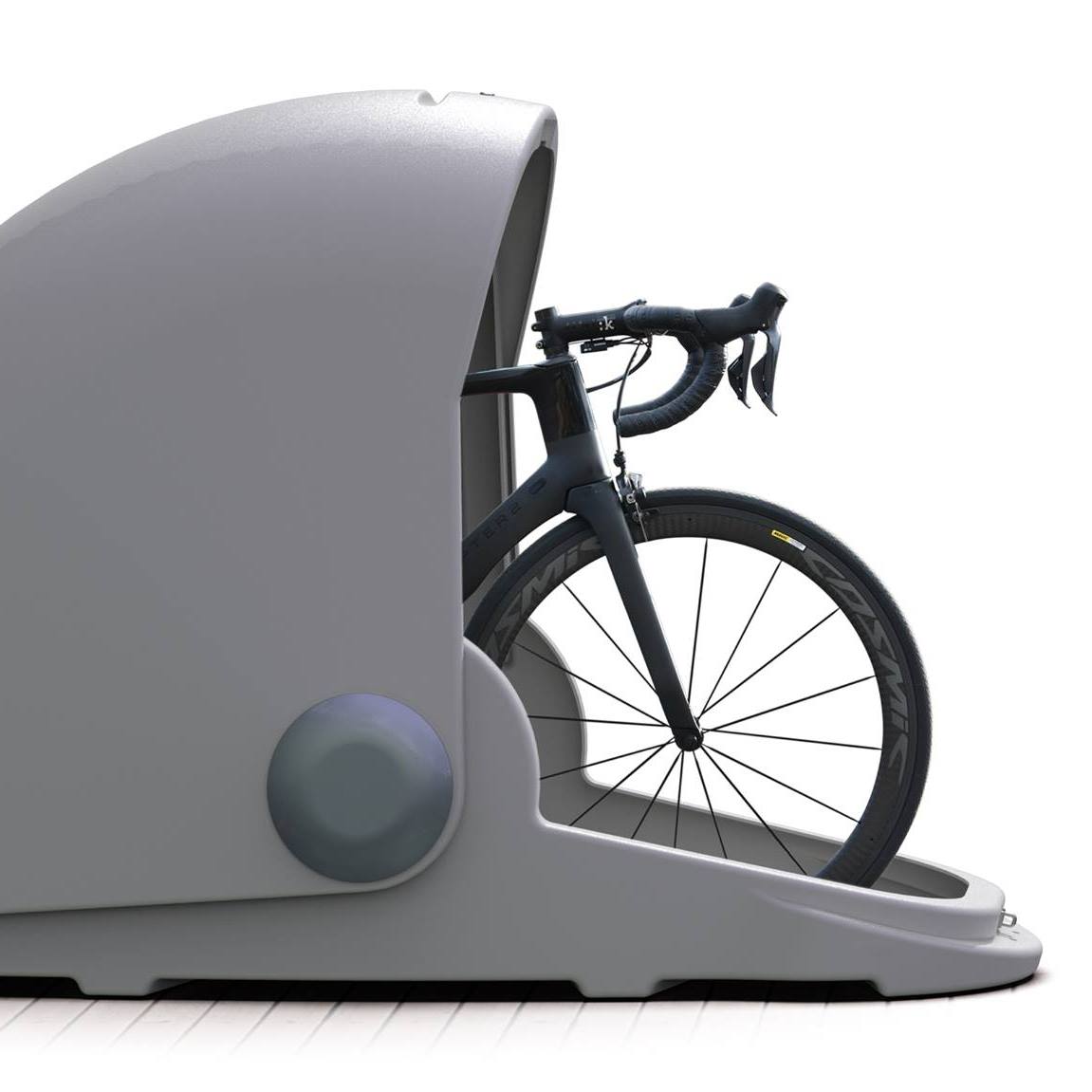 Basecamp是一个外观造型好似蜗牛壳状的塑料胶囊,但对于自行车来说,它本身则是一台既安全又智能的小型自行车存储设施。
