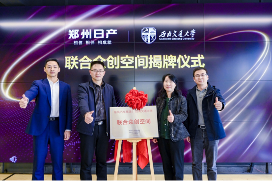 郑州日产党委副书记、纪委书记赵朋,西南交大设计艺术学院执行院长支锦亦等领导为“联合众创空间”揭牌