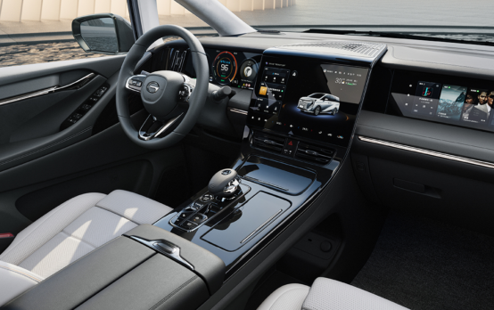 新车的内部继续延续了传祺M8宗师系列的两种风格,分别为歌剧殿堂和云山珠水,均非常的豪华时尚。智能配置上,为其配备了7屏联动系统,包括12.3英寸的液晶仪表、14.6英寸的中控屏、副驾驶娱乐屏、流媒体后视镜、后排15.6英寸吸顶屏以及后排扶手上的两块扶手屏。