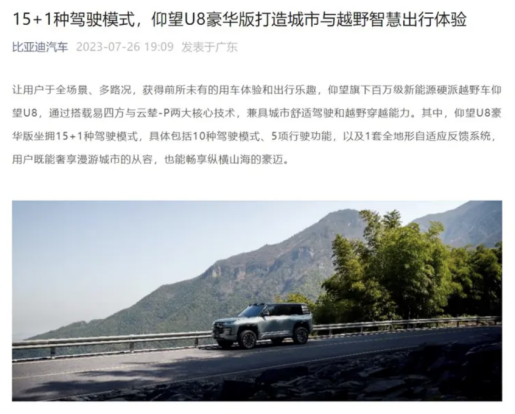 拥有15+1种驾驶模式,仰望U8更多配置信息公布
