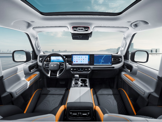 内饰方面,首创五联屏智能座舱,双屏互动、三指飞屏、无线投屏等功能,让路上的娱乐更加丰富多彩。车内使用大面积软包覆盖,1.2㎡可开启全景大天窗更是硬派越野车的罕见配备,采光面积同级领先,为用户带来更加温馨和豪华的驾乘生活。全新BJ40的外观、内饰双重进化,可谓是“颜型举指”,好看到叫人竖起大拇指,带来一眼入魂的设计美学之潮。