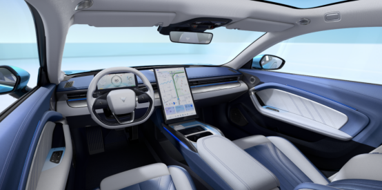 新车内部,拥有环抱式的T形布局,配备三幅式平底方向盘,搭配全液晶仪表盘+17.6英寸中控大屏,据了解,该中控屏搭载了8155车规级芯片,功能表现更加智能流畅。动力上,新车提供后驱和四驱两种动力,后驱车型最大功率为170kW,峰值扭矩为310N·m;四驱车型配备前后双电机,综合功率为340kW,峰值扭矩为620N·m。