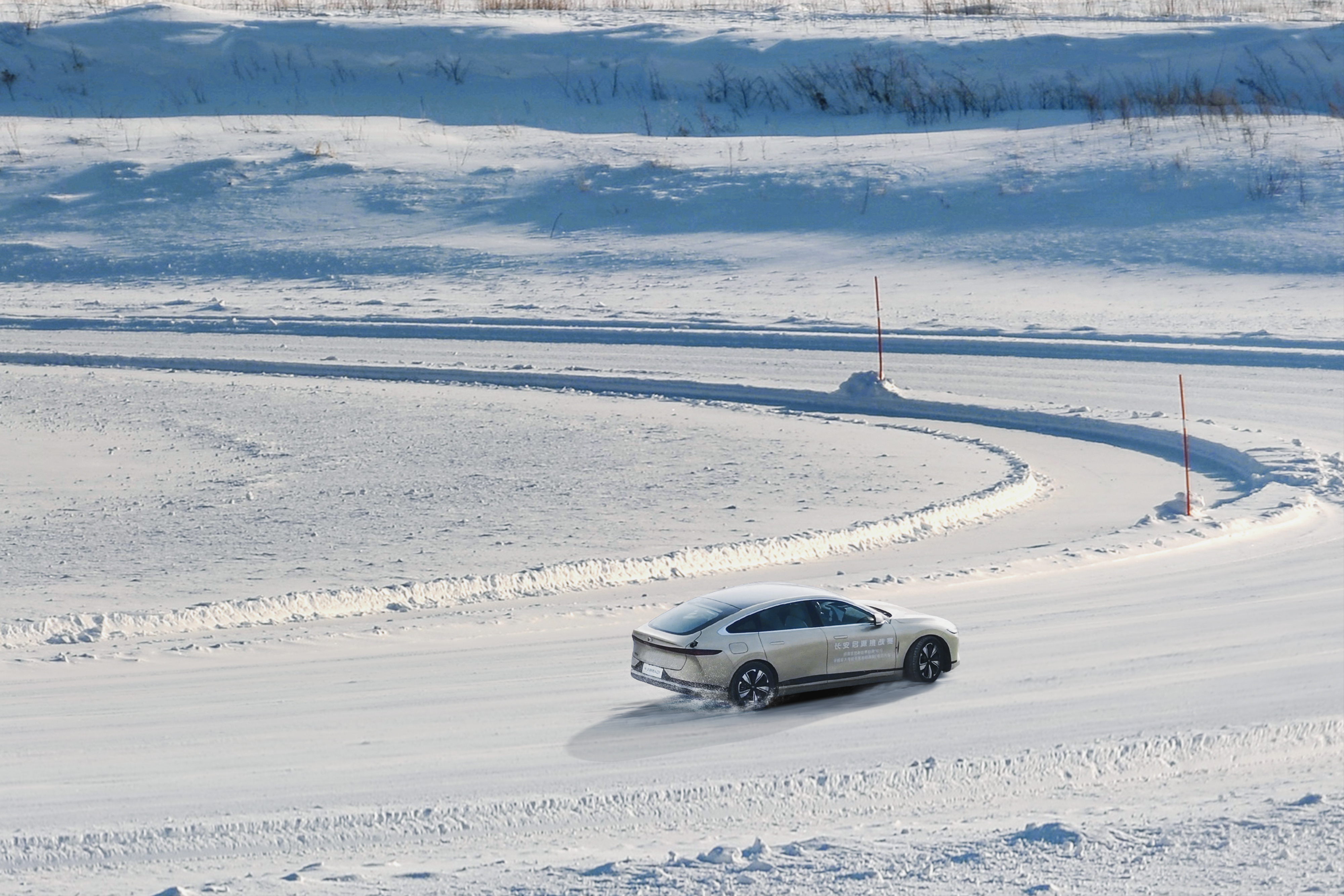 对于新能源车来说,极寒的低温环境应该是最难克服的环境,在冬季的博斯腾湖冰雪环境中,长安启源A07进行了零百加速、8字绕桩、制动距离等测试,表现出了优秀的电驱性能和底盘稳定性。