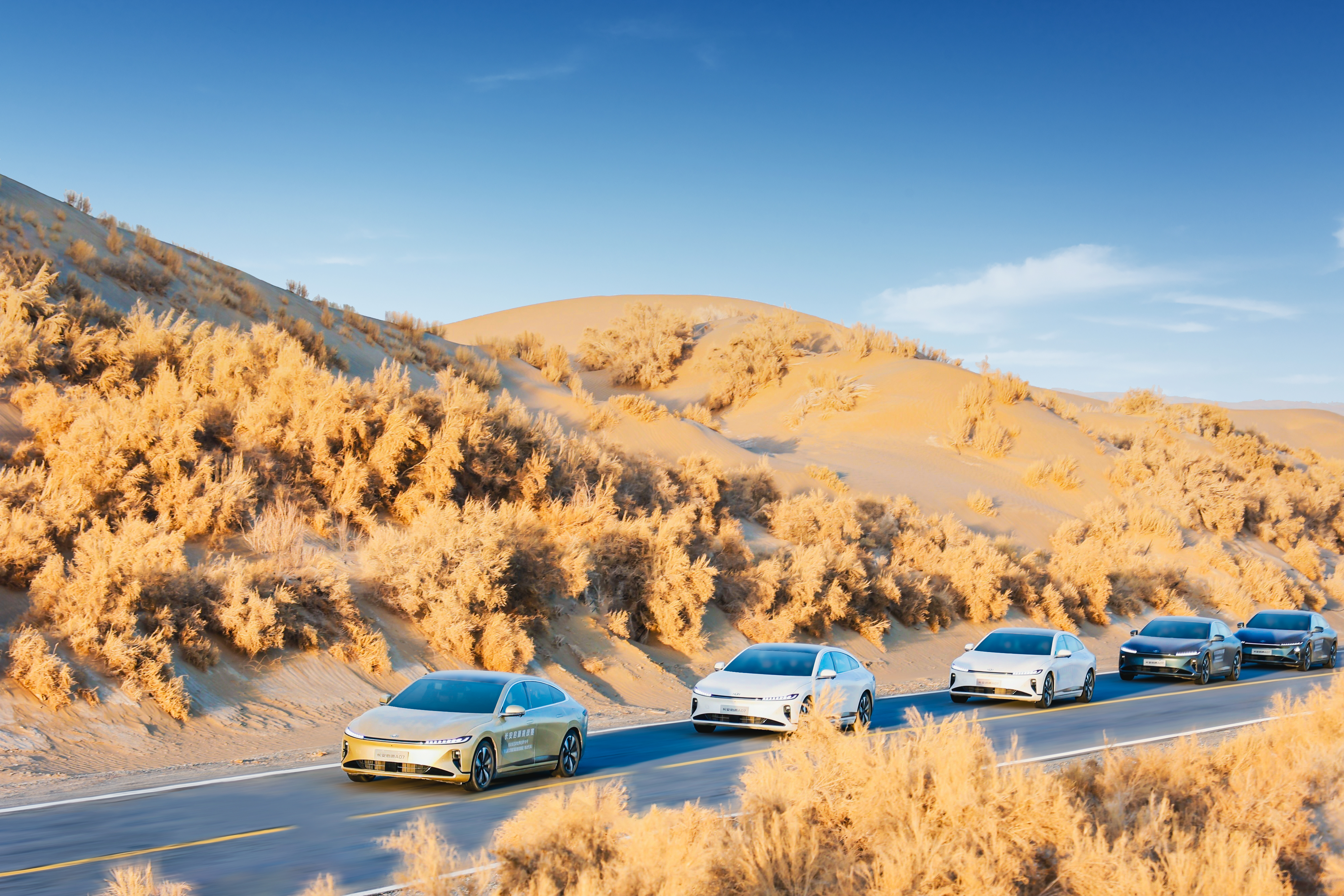 在塔克拉玛干沙漠环境中,通过设置智能驾驶路段,节能驾驶路段、高性能冲刺路段,深度展现了长安启源A07数智电驱性能、驾控和前瞻数智配置,凸显高级智慧能量管理、超懂交流AI管家、AR-HUD系统、L2级IACC智能领航系统、全方位预警制动等智能配置带来的便捷与享受。