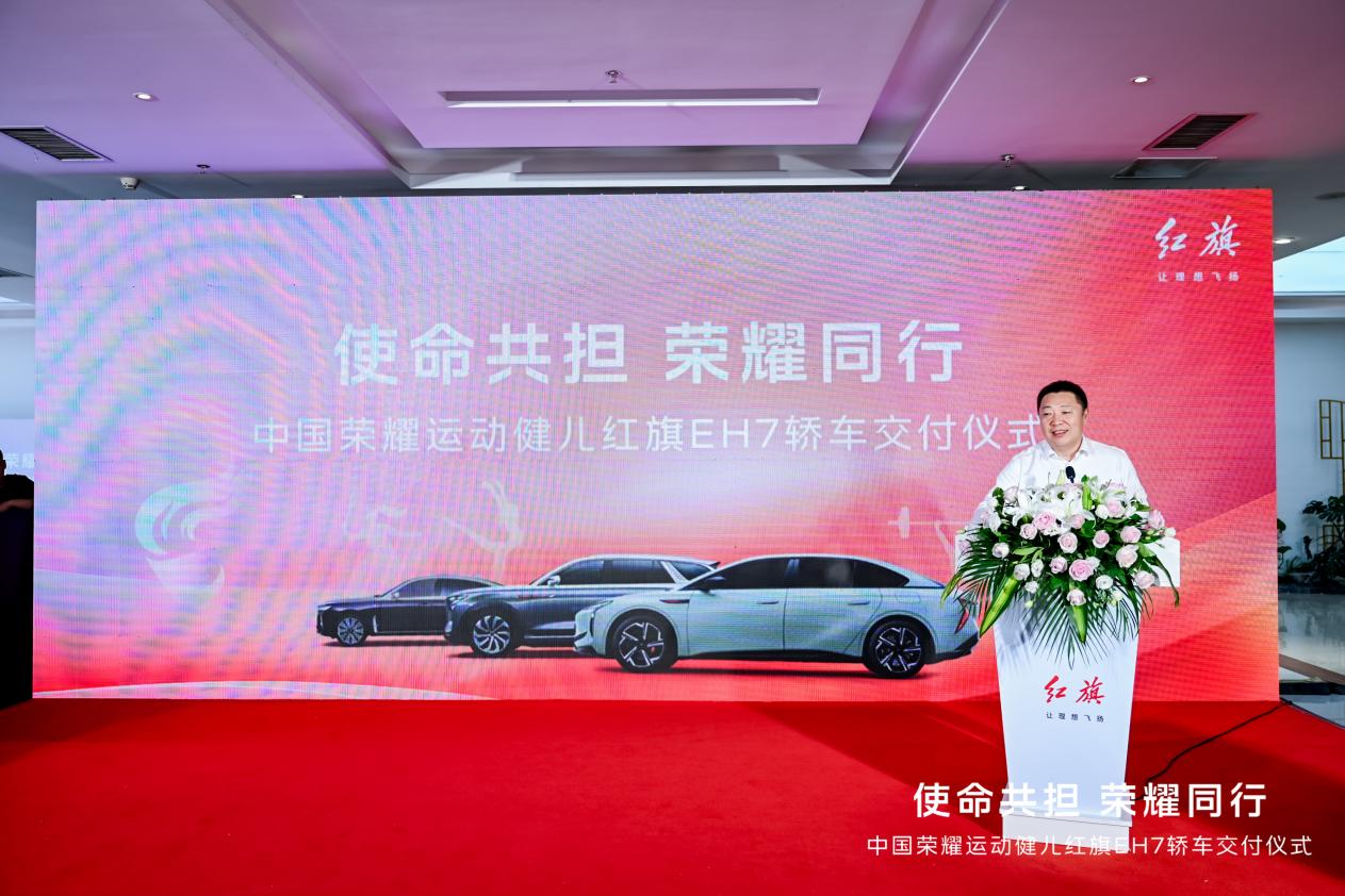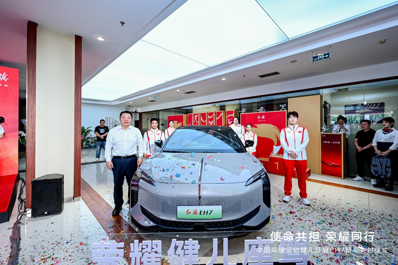 满怀憧憬,旗赴新程。以本次交车为起始,130台红旗EH7荣耀版将陆续交付至荣耀健儿手中,成为他们人生中的重要伙伴,与其一起奔浪前行、再创佳绩。红旗品牌作为中国体育事业的重要伙伴,也将继续贡献新力量、创造新价值,共赴下一个辉煌的里程碑。