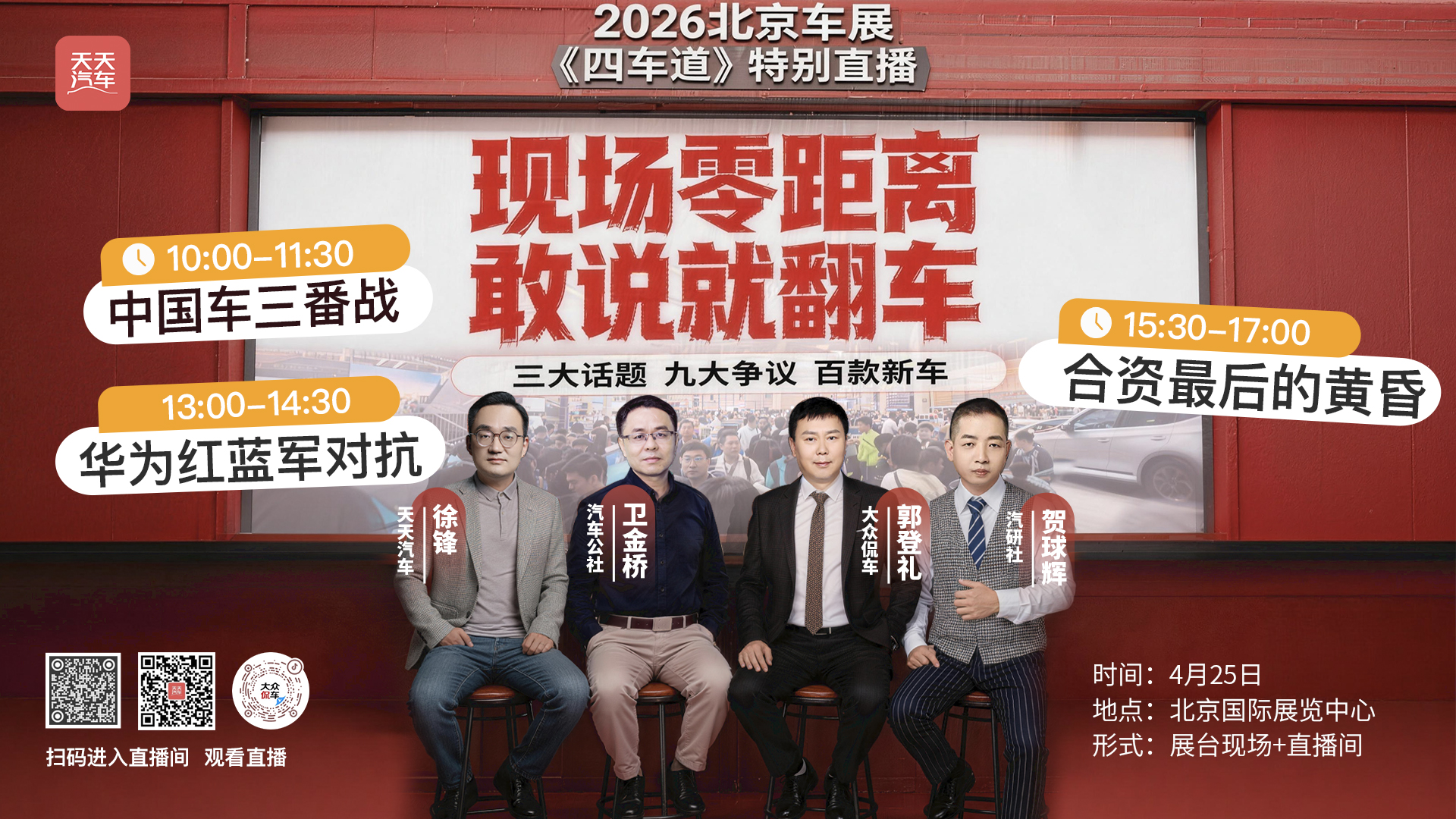 2026北京车展《四车道》特别直播 三大话题,九大争议,百款新车 现场零距离:敢说就翻车