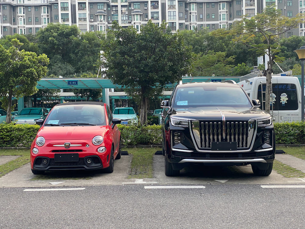 红旗LS7… 说是限量,还要Z审, 气场真的太凶残了… 光机盖就跟我车顶一边高了。