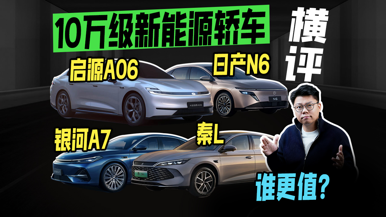 10万级新能源轿车横评!日产 N6 、秦L、银河A7、启源A06谁更值?
